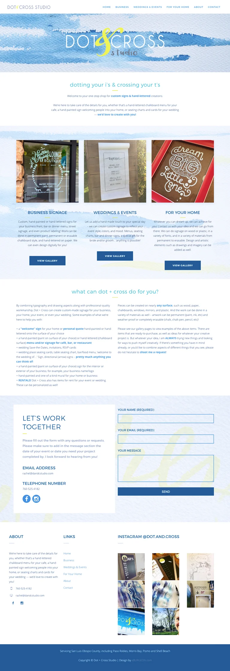 The goal of redesigning this website was to attract new clients to hire Rachel of Dot + Cross Studio for her work creating custom lettering projects and signage for businesses, weddings, events, and for the home. This project included creating a website that was responsive and mobile-friendly with high quality images displaying Rachel's work.